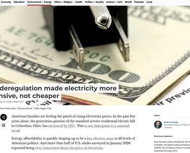 January 3, 2026. Dr. Dormady's research is discussed and he is quoted in a Cleveland.com news story regarding retail energy markets.
