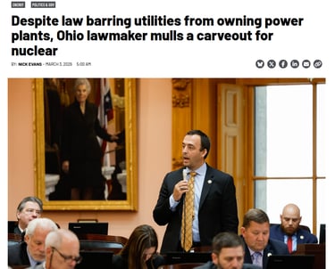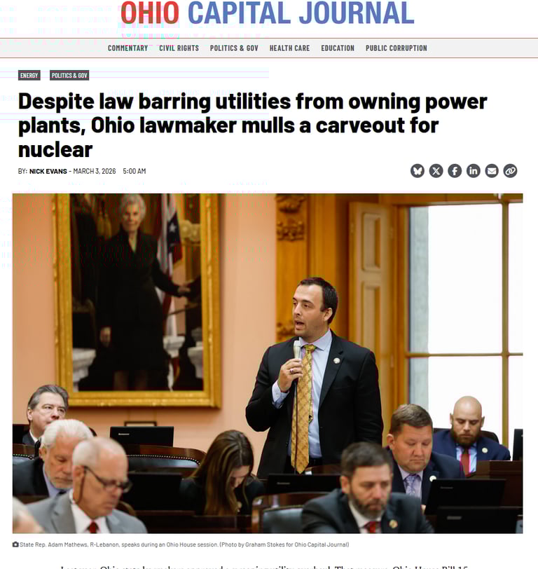 March 3, 2026. Dr. Dormady is interviewed, and his team's research is discussed, about a possible Ohio bill to re-regulate certain nuclear generation in Ohio.