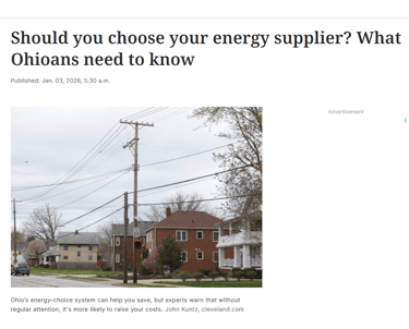 January 3, 2026. Dr. Dormady's research is discussed and he is quoted in a Cleveland.com news story regarding retail energy markets.